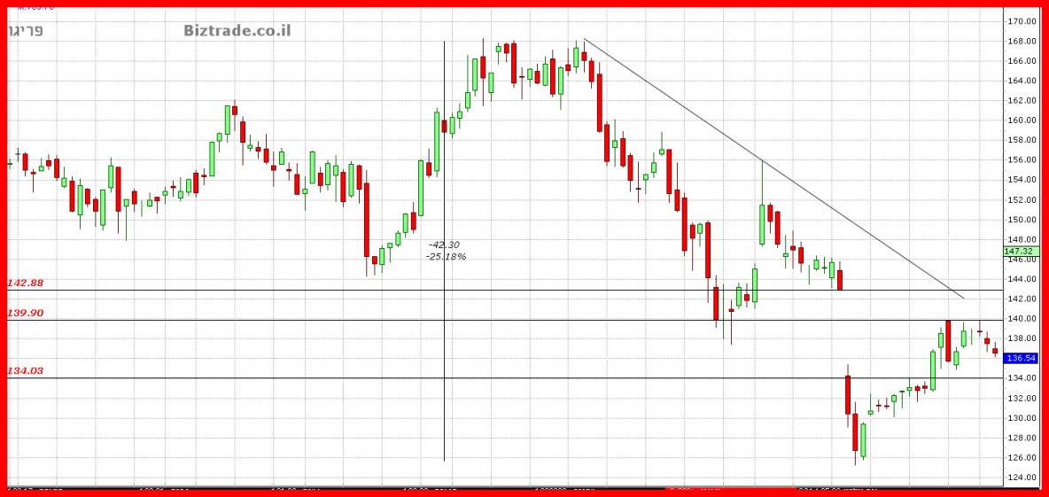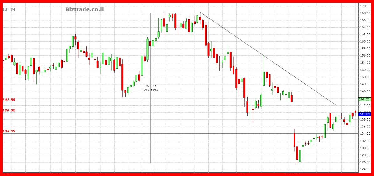 באם יש פריצה המחיר צפוי להגיע ל 143 כפי שכבר עודכן,