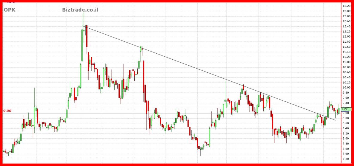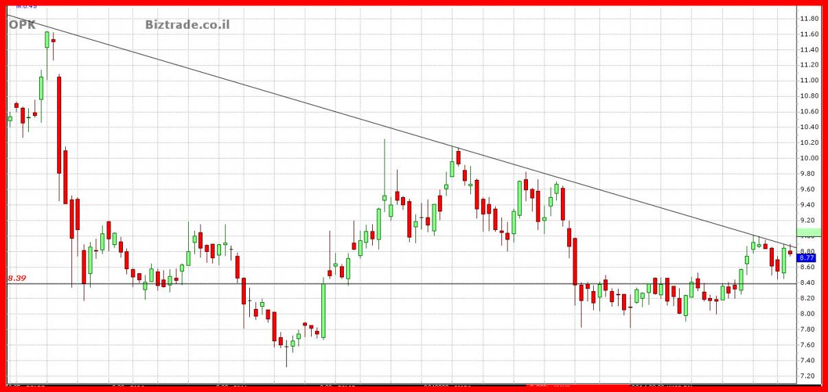 למרות התמיכה הזמנית ב 8.40$ , והעליות שלשום של כ 3% , המחיר מגיע שוב אתמול לקו מגמה יורד, ונחסם, כמובן כול ניסיון לפריצת הקו פוגש את המחיר נמוך יותר, וזה כרגע ב 8.8$