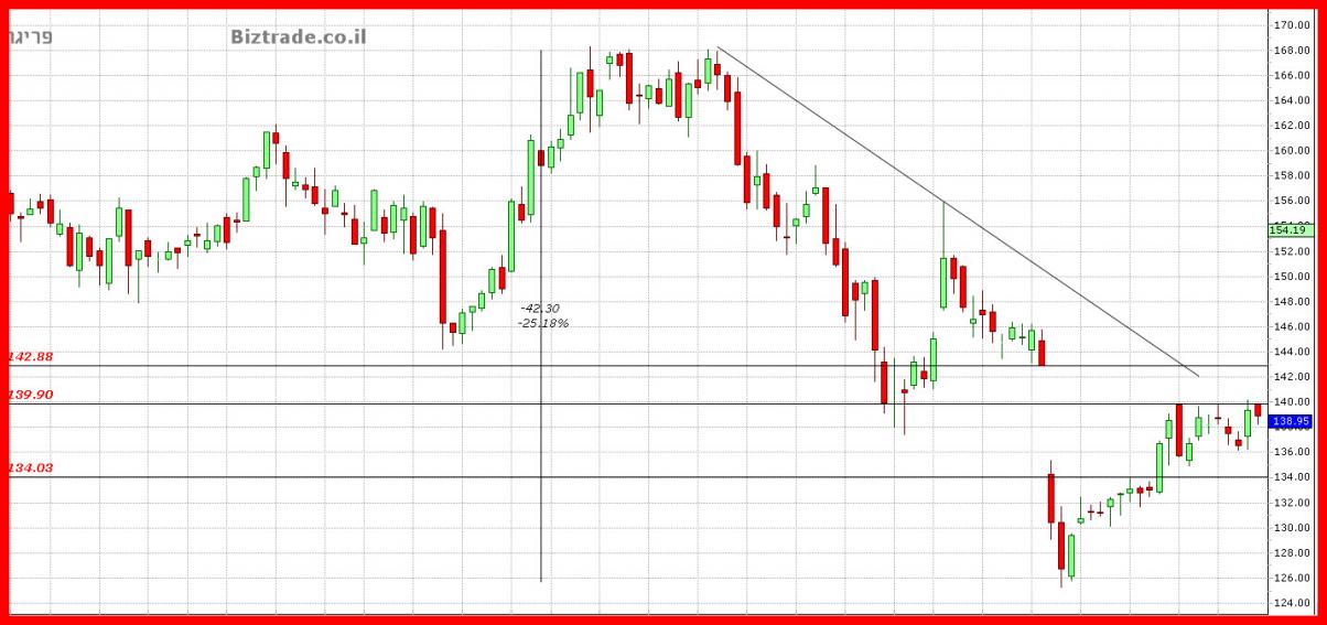 המסחר של אתמול מוכיח שקו ה 140$, עדיין לא נפרץ ,( כול הבעיה הוא דיוק הקו בנקודה בודדת, = 1 $),