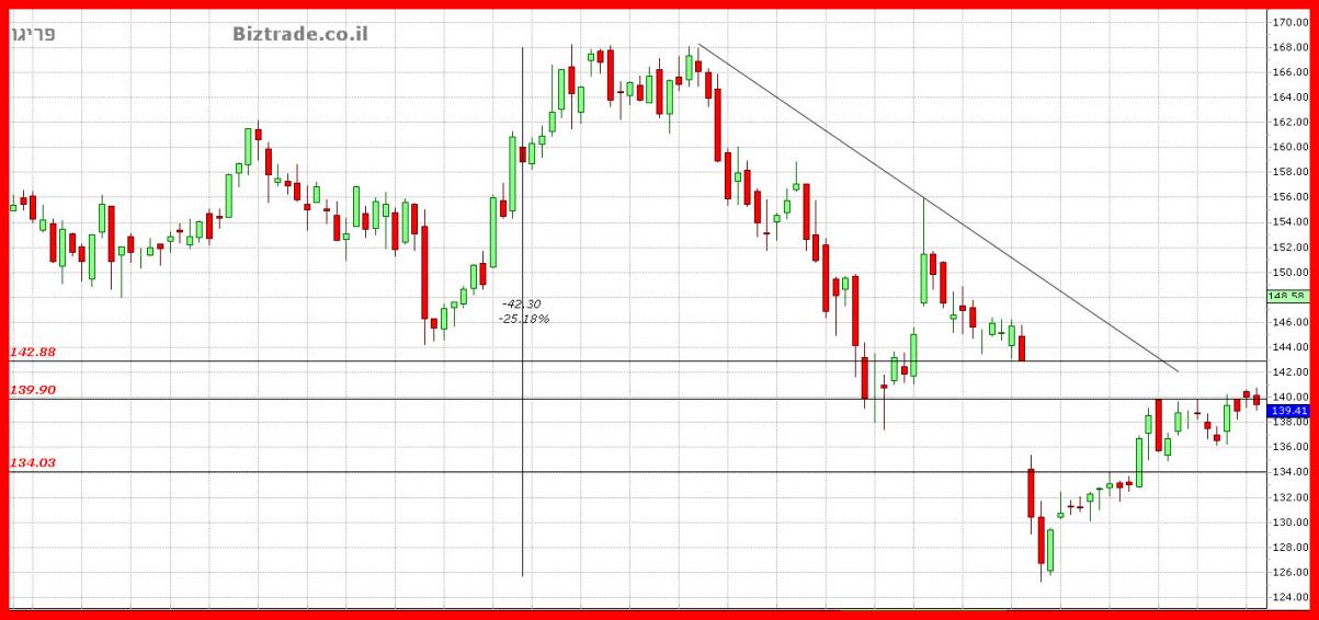 על כן אין צפי ל המשכיות ל 143$, שיוכל להיות כזה רק בפריצה ברורה.