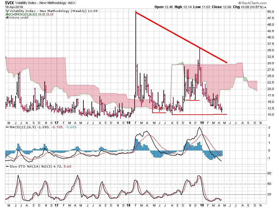 הגרף השבועי על פני 3 שנים מראה את רמות השפל בו נמצא ה"פחד". גם ענן האיצ'מוקו צובע את המגמה.