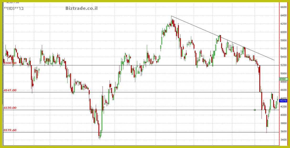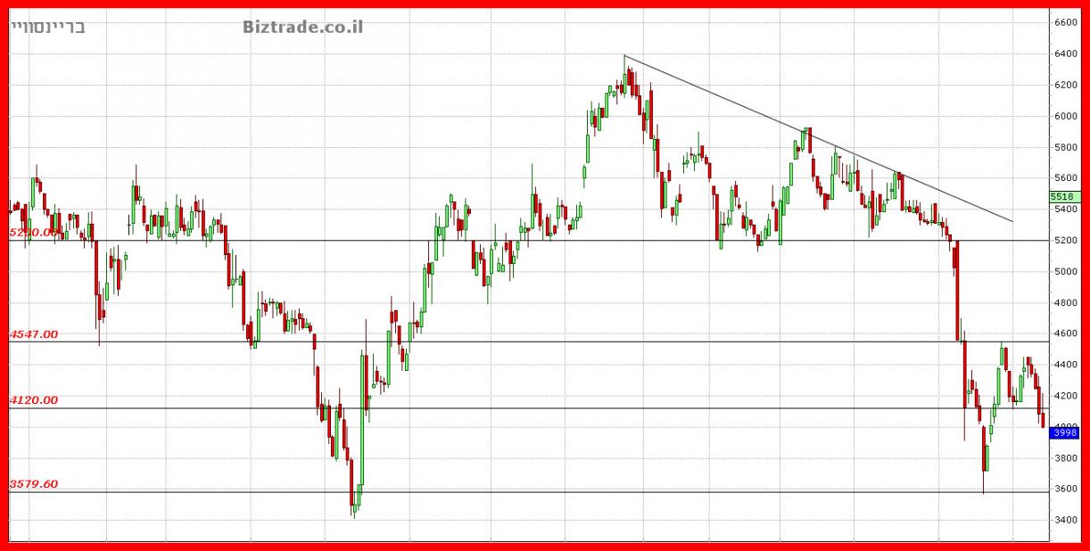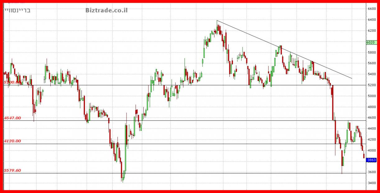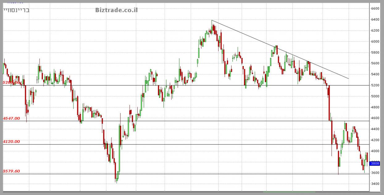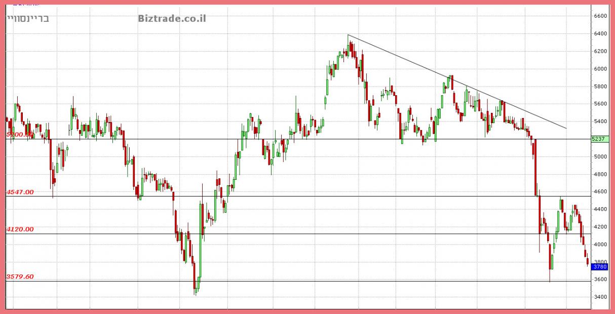 כצפוי מהעדכון האחרון וכול אלא אשר לפניו, המחיר ממשיך את הירידות ומתקרב לאזור הרגיש יותר ב 3600, שם אמורים להיות קונים , לפחות בשלב זה,