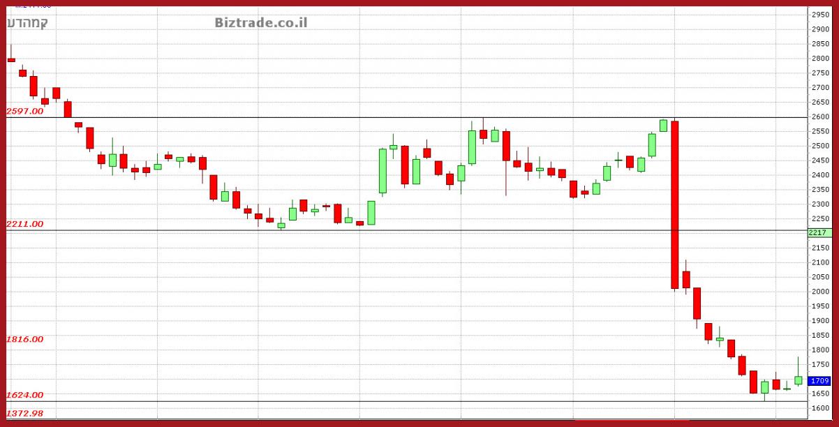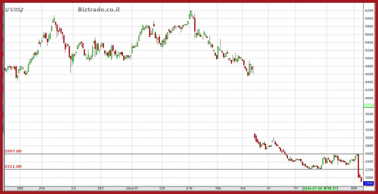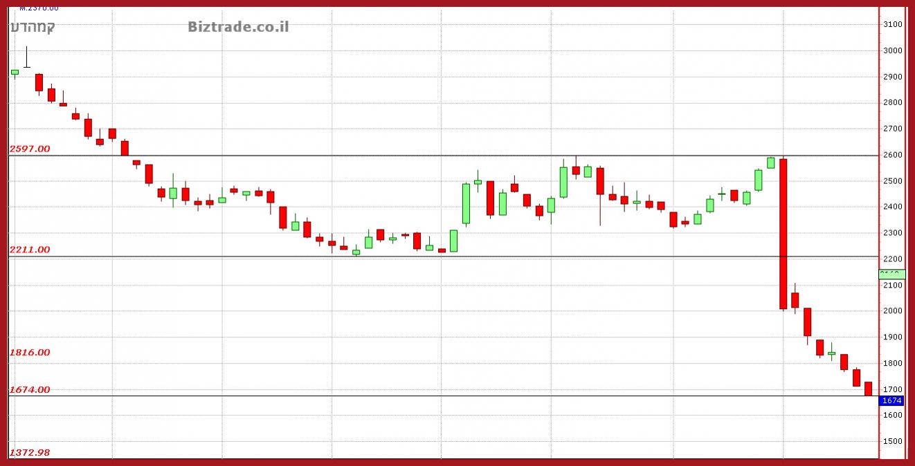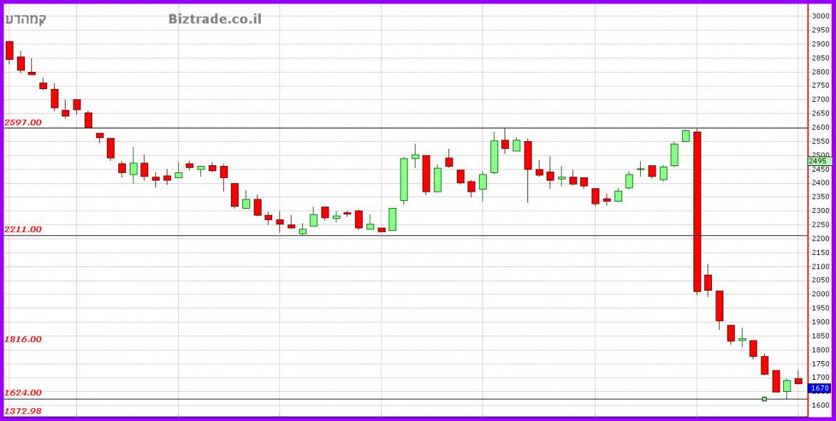 המחיר הולך מטה כול עוד לא פורץ את ה 2600 , והיום בשביל הכיף שלו הוא יורד 23% נוספים.