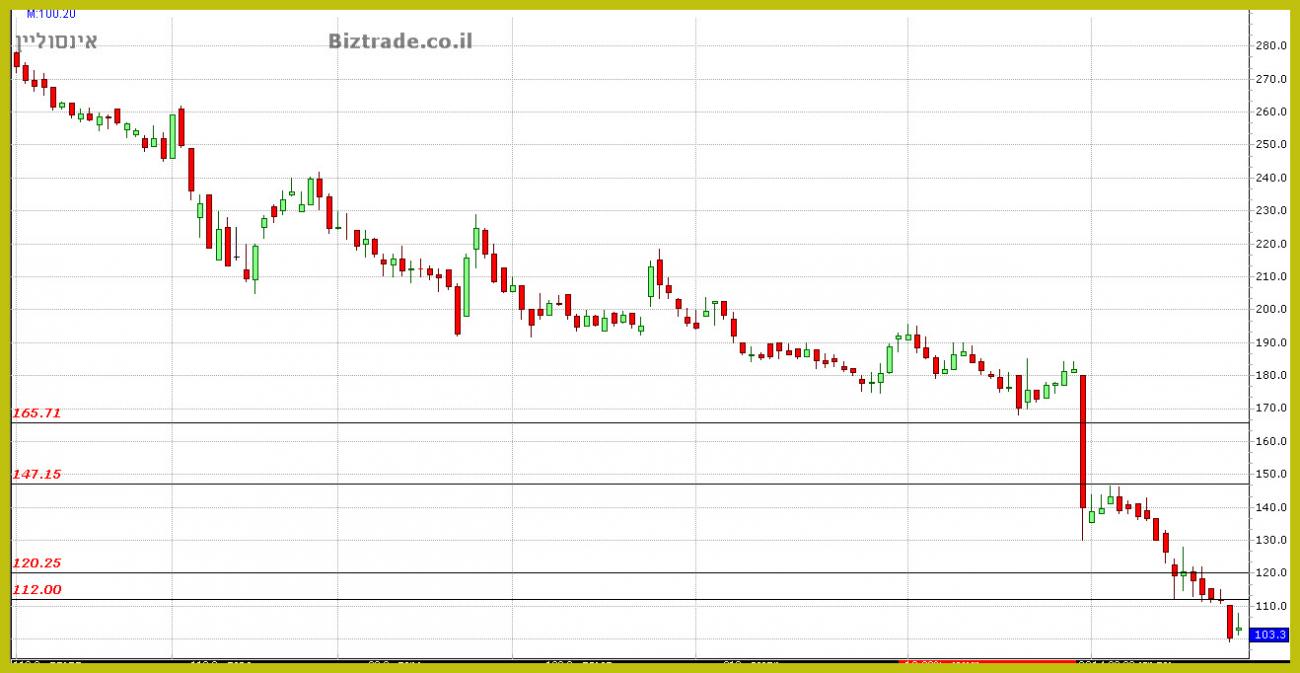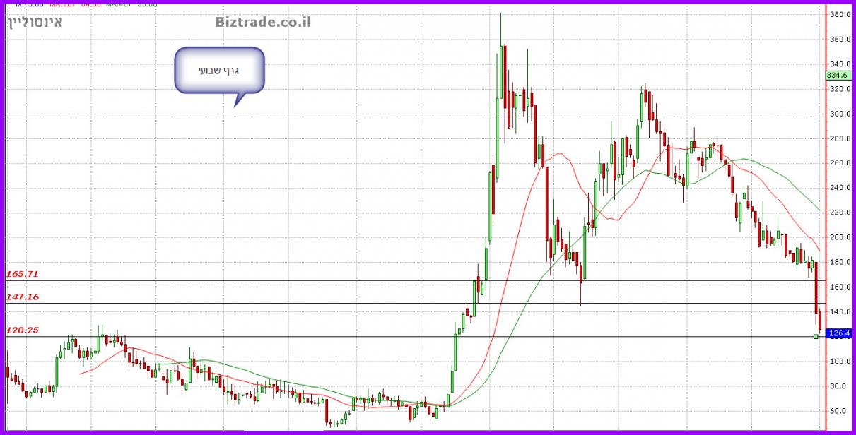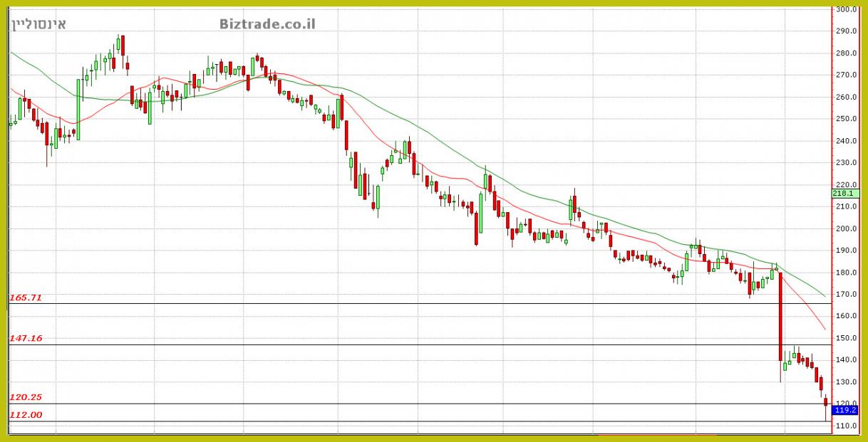 המנייה נופלת בעוד כ 10% עד כו, וכלל לא מתייחסת לקו התמיכה ב 120, ונסחרת כרגע ב 113.6.