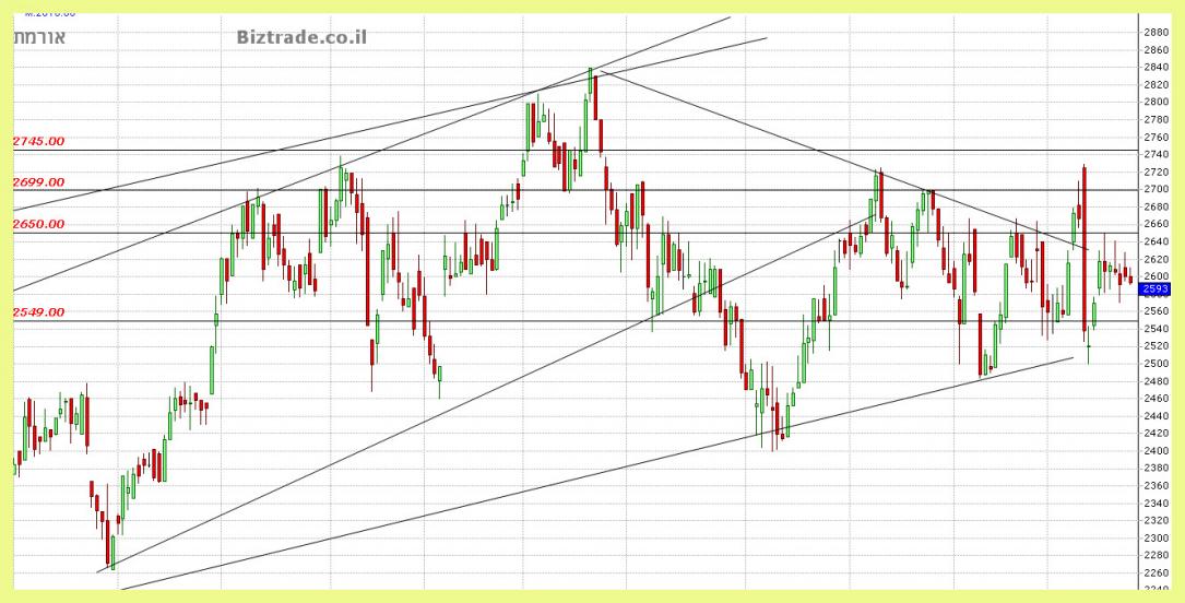 היא כבר שברה לפני חודשיים את קו המגמה היורד הארוך טווח שלה, והשבוע גם שוברת תמיכה אופקית ב 2600 ומגיעה אתמול לסגירה ב 2506.