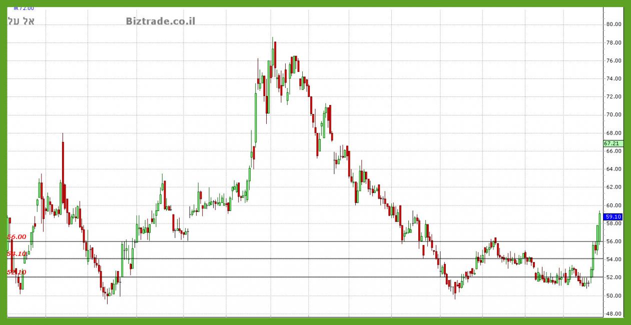 הפריצה של ה 54 הגיע ואיתה גם הפריצה של ה 56 אתמול , כאשר המחיר סוגר ב 57.8.