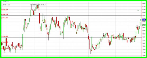 המחיר מראה בגרף הצלחה בשמירה על קו ה 8000 + פריצה של ה 8200,