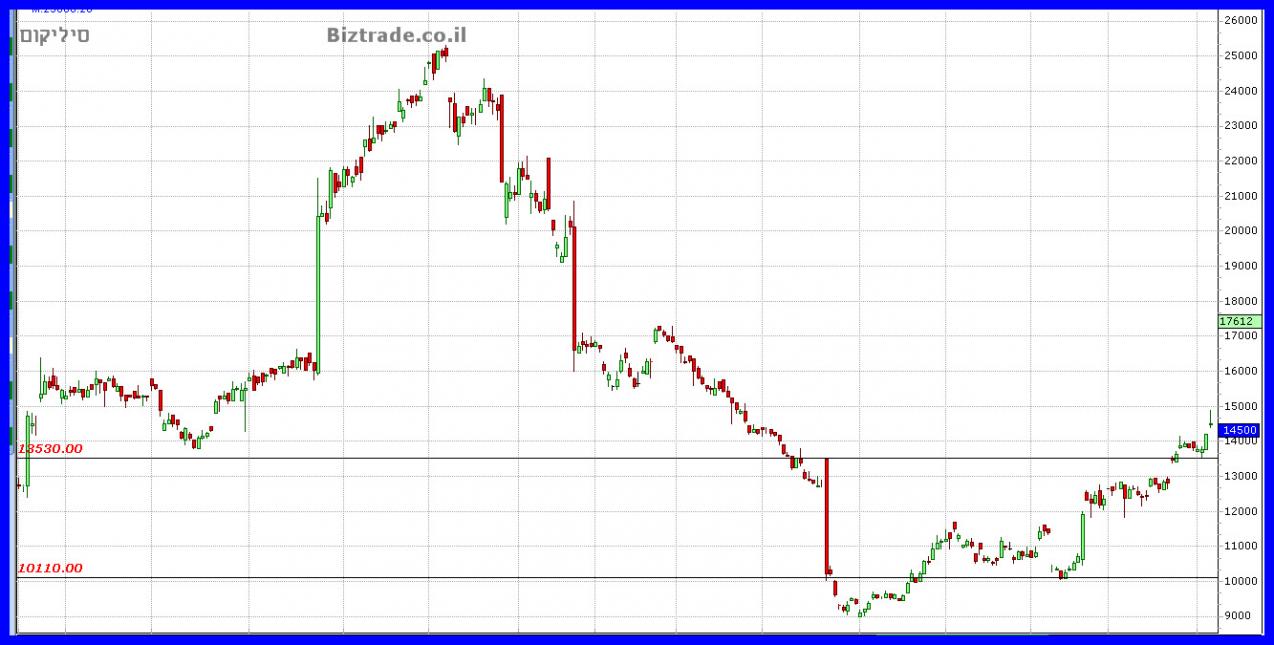 החשיבות הטכנית כאן היא שמירה על קו שנפרץ ב 13530 , וכול עוד המחיר מעליו = סיכוי טוב לחזרה לעליות , אבל כול כניסה חזרה לטווח הנר ייצור בעייה טכני של המשך ירידות.