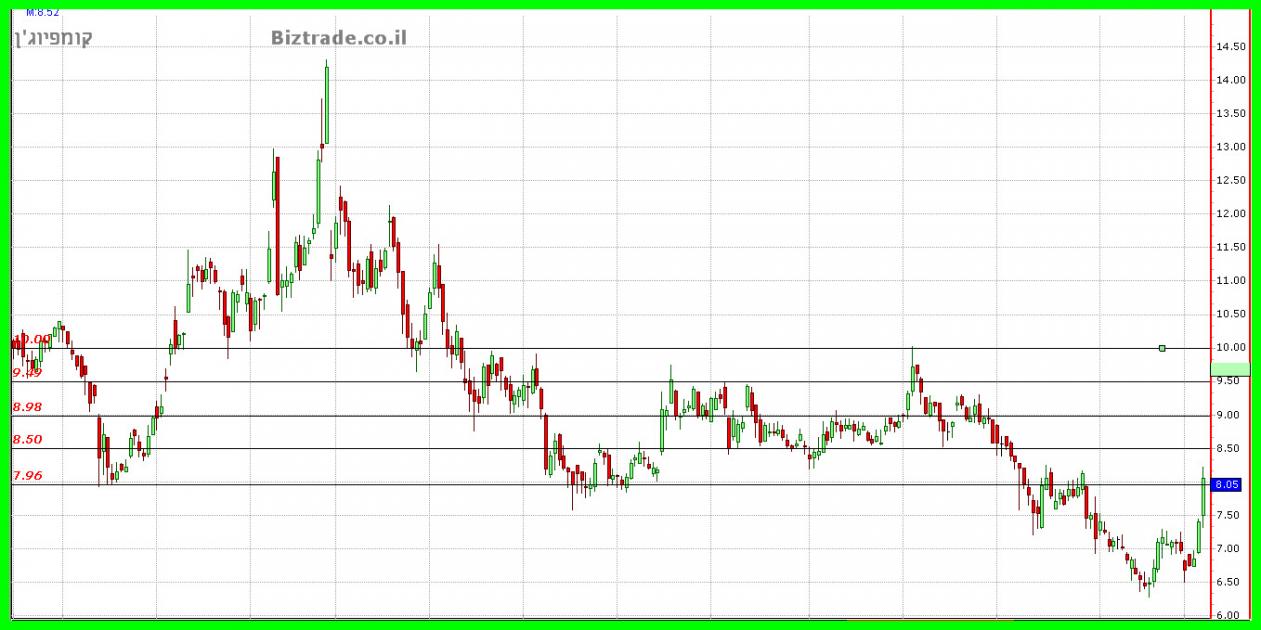 המחיר יוצר תחתית כפולה ב 6.5$, ולאחר בדיקתה הוא פותח ב שלושה ימי עליות כאשר הוא גם מסיים את השבוע עם סגירה מעל התנגדות טכנית ב 8$.