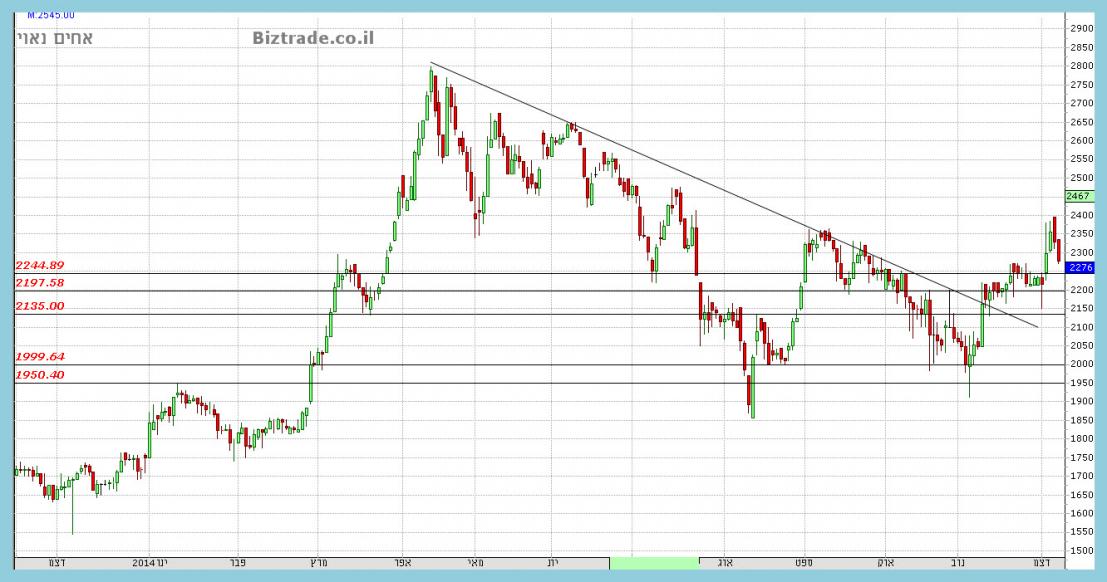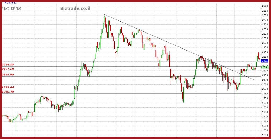 המחיר נכנע בינתיים ל 2400 למרות שגרף שבועי חיובי .