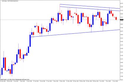 המגמה הראשית דובית לפחות על פי הממוצעים הנעים הארוכים נבלמה הצניחה בסוף ינואר השנה. בשטח לפי הניתוח מתרחש תהליך של דישדוש מתמשך כשהגבעה האחרונה בדישדוש נבלמה בשער 58.73 דולר ובשני ימי המסחר האחרונים כבר הופיעו עמודות דישדוש תוך שמירה על רמת מחיר בתוך הרצועה. שער 54 דולר נבחן כבר כ-4 פעמים ולאחרונה נפרץ בכיוון מעלה. המגמה הדובית איתנה ורק מעל שער 70 דולר בניתוח היומי עשויה להפוך שורית. כעת בתרחיש לונגי הגרף שואף לשער 65 דולר כשתיקון מטה יגרור את הגרף לשער 55 דולר.