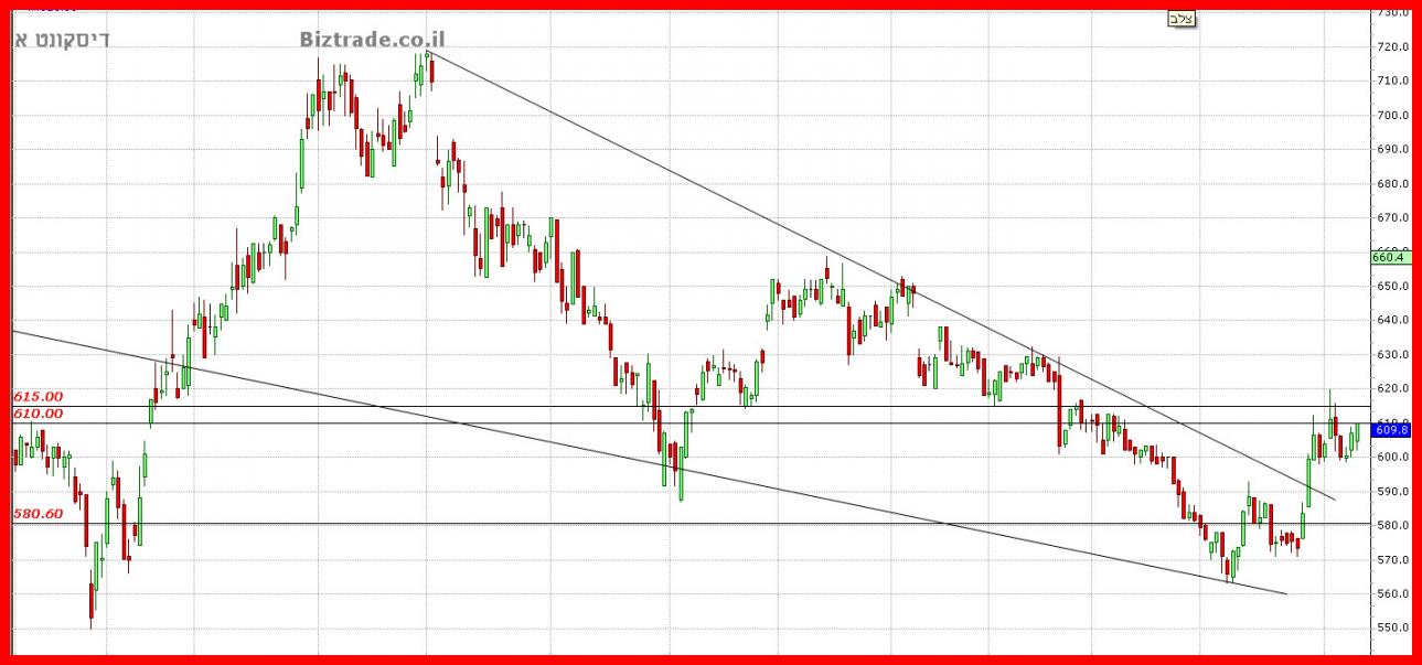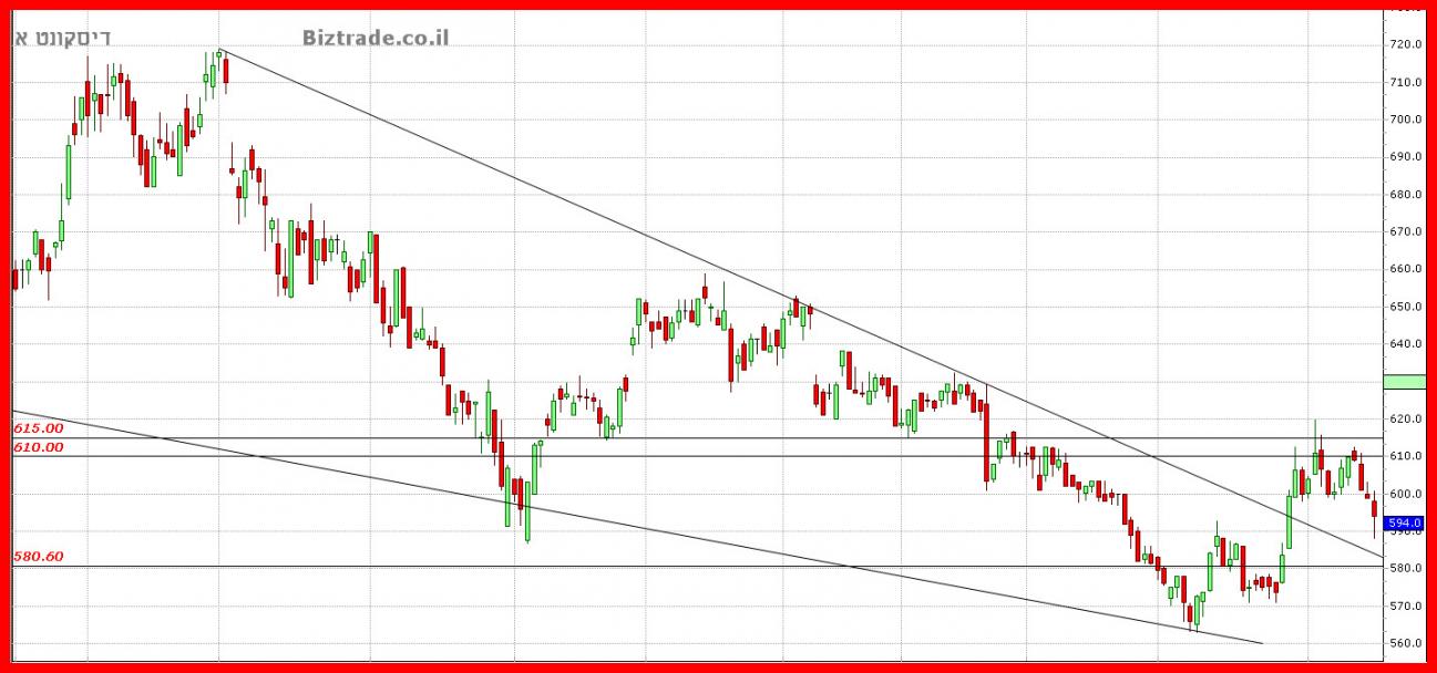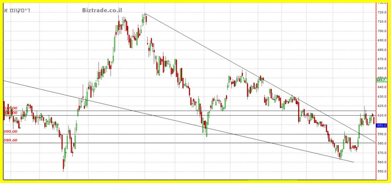 דיסקונטהחשיבות היא שמירה על קו מגמה יורד ב 580 + -