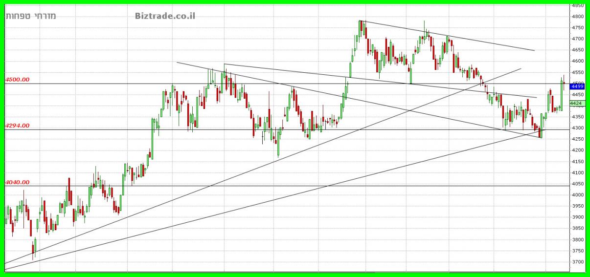 אומנם הייתה התרוממות יפה מה קו ב 4250 אבל הסיום ב יום חמישי זה היה מאכזב משהו, כאשר את קו ה 4500 המחיר לא הצליח לפרוץ במשך יומיים.