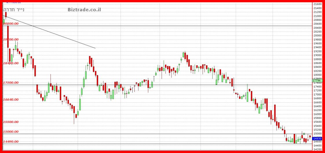 המחיר מנסה שוב לפרוץ את קו ה15000 , בינתיים ללא הצלחה.