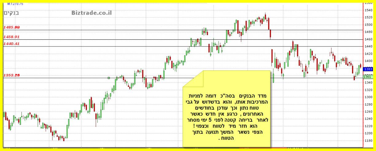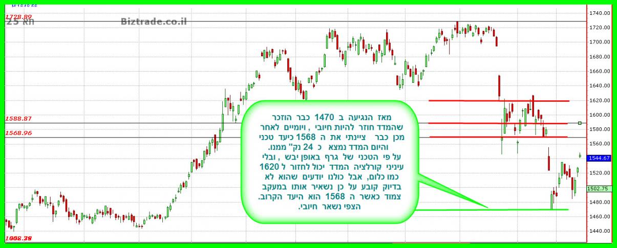 כמובן ש על בגרף חודשי אני כותב כרגע וכאן הדברים מתנהלים לאט, על כן עוד צפויים יחד עם המשך ירידות, נרות חודשיים לעלייה אבל קטנים יותר , כאשר המחיר צפוי בשלב מסויים לפגוש את קו מגמה עולה אשר מופיע בגרף ולהתמודד אתו, ורק שבירתו תוביל מהר יותר לירידות נוספות, כאשר כרגע המדד בהגיעו עליו בהחלט יוכל להיתמך וחזור מעלה לגיחת בדיקה קווים שנשברו .