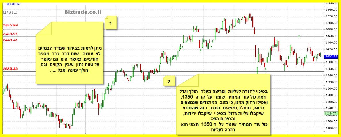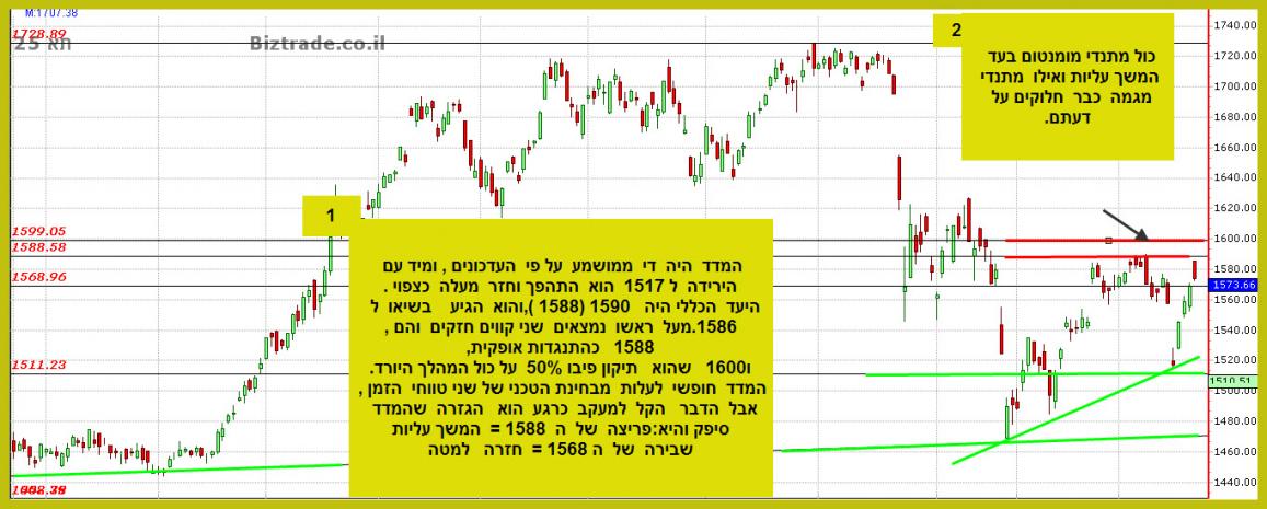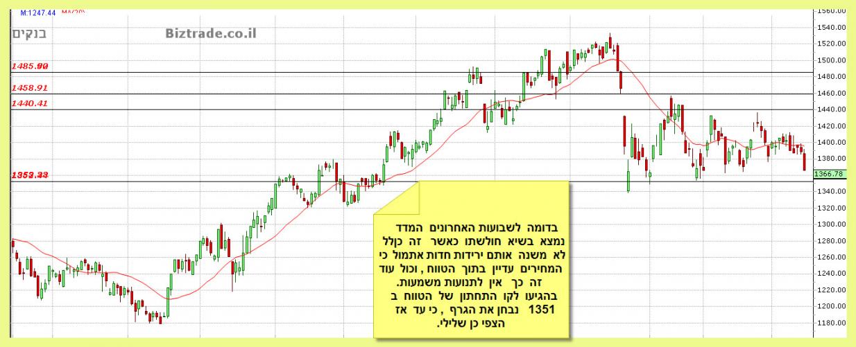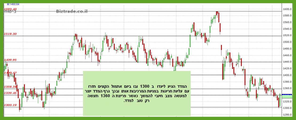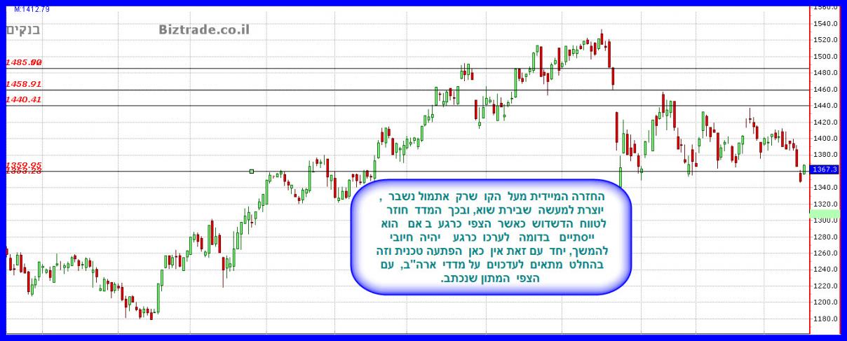 המדד נמצא במגמת עלייה מאז ה קו ב 1044 , ומרגע הפריצה של קו ה 1360 הוא המשיך בעלייתו לקראת אותו שיא השיאים ב 1729 בו שהה כ 5 חודשים בתחום שבין ה 1600 -- 1700 , ולפני חודש יצר הגרף תבנית נרות יפנים להיפוך בשם בולען דובי.