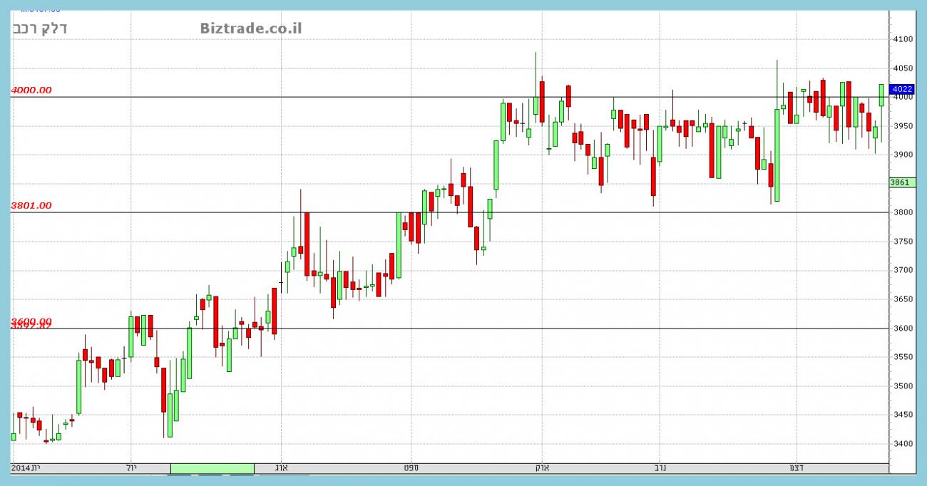כול ניסיון של המוכרים , בינתיים , להרחיק את המחיר מקו ה 4000 , לא מצליח , והשבוע המחיר גם משיג סגירה מעל ה 4000.