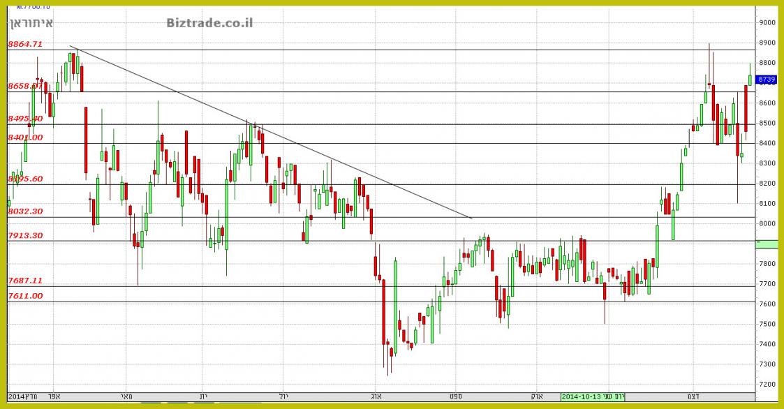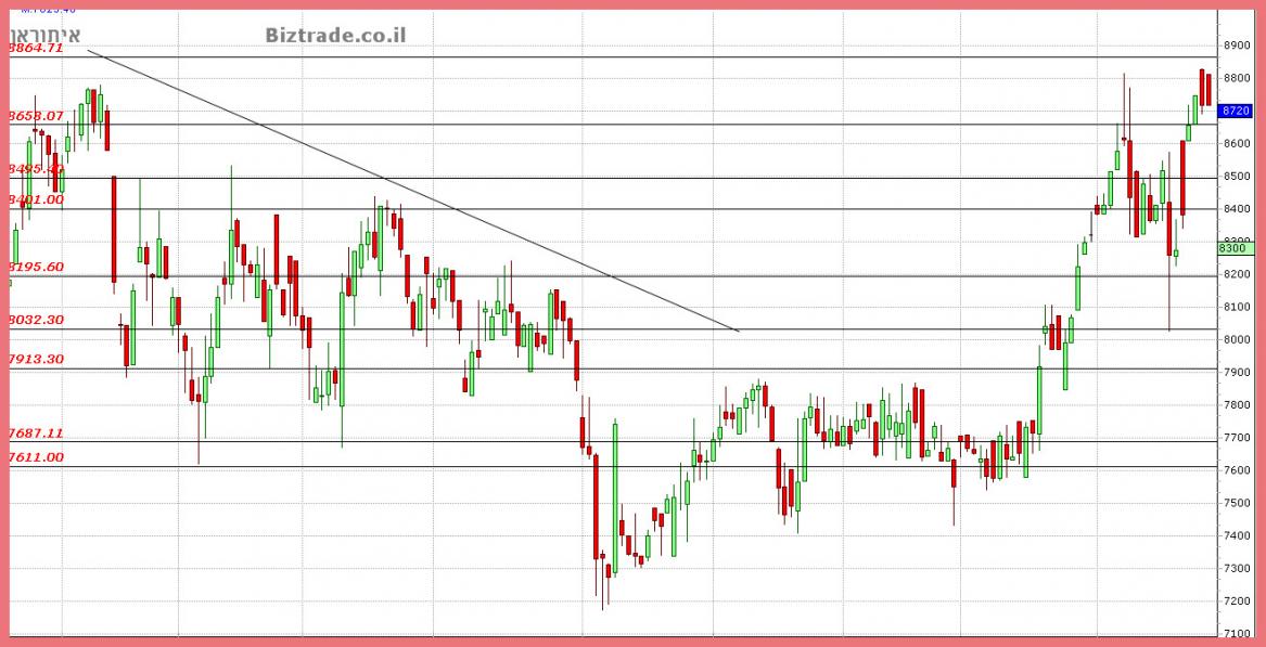 כול עוד המחיר נמצא מעל ה 8400 = חיובי להמשך ורק שבירתו תכניס לכאן חולשה.