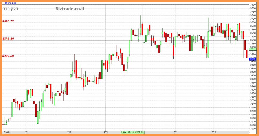 ליעדה הטכני היא הגיע כבר היום בבוקר, כאשר המחיר יורד לבדיקת קו טווח הדשדוש אשר ב 3500, כמובן שבינתיים בתוך יומי המחיר גם ירד מקו זה אבל הקונים דאגו להחזירו מייד מעליו.