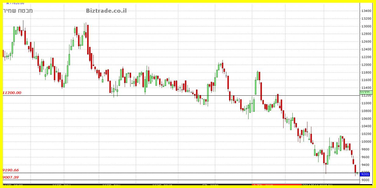 המחיר הגיע ליעדו ב 9200 , ומנסה להינצל מירידה ליעד הבא ב 9000, האם הוא יכול לעצור כאן ??