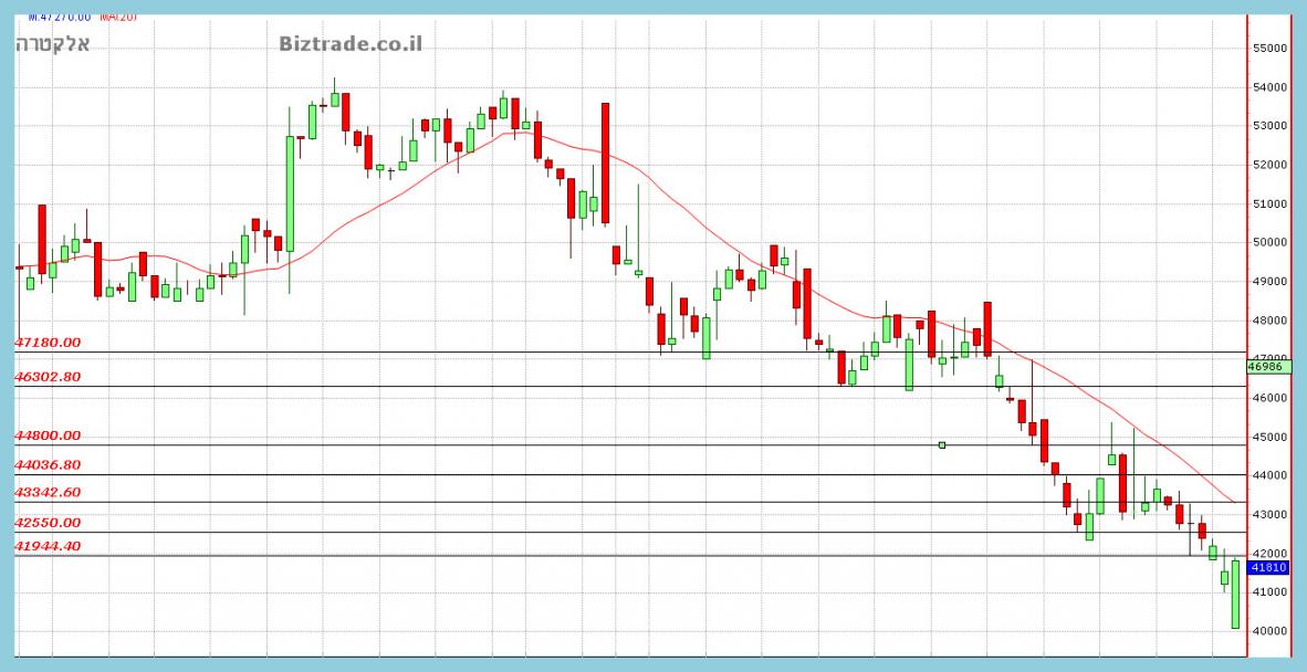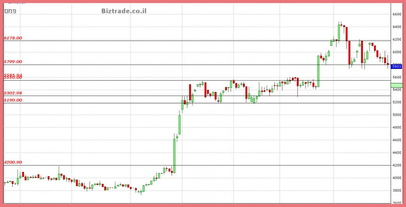 על כן למרות שהעדיפות הטכנית היא המשך ירידות כול עוד אין פריצה של הגבוה, אזי קו ה 5800 עדיין שומר על המחיר .