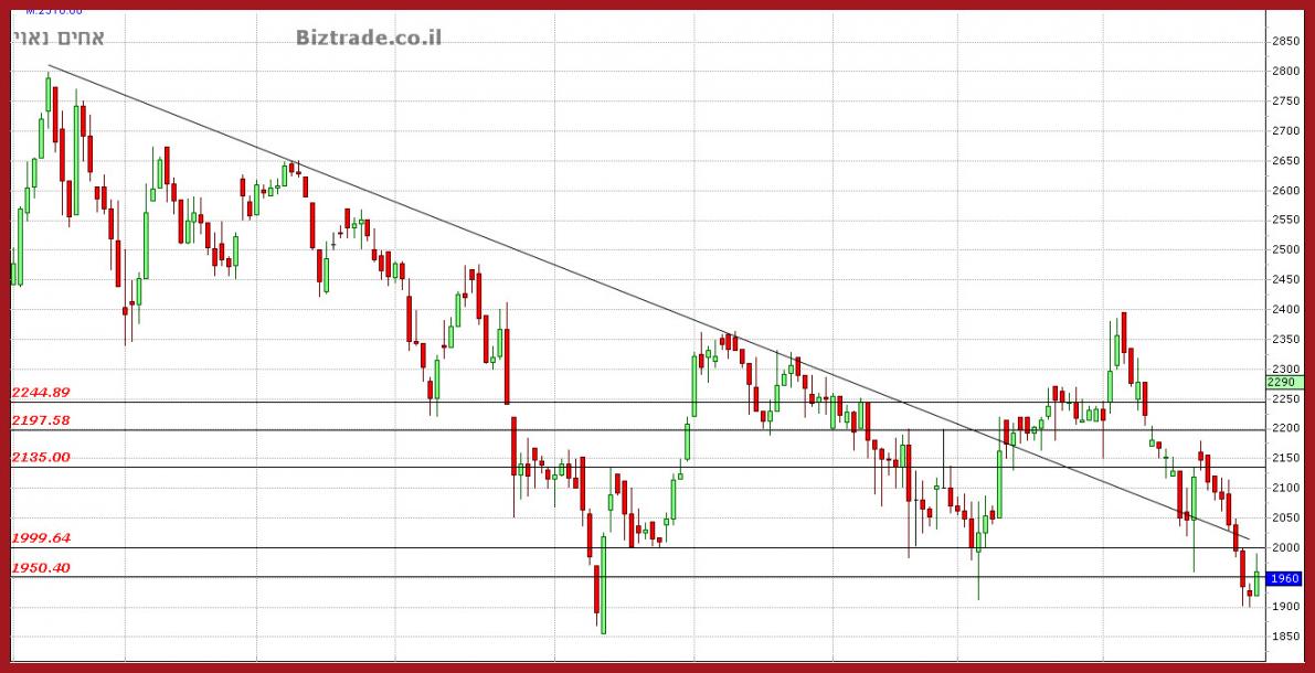 אני ממליץ לא להתנפל עקב העליות העכשווית, מהסיבה שהמחיר נמצא כרגע מתחת ל קו המגמה היורד שרק שבר , ולכן כניסה טכנית בטוחה רק בפריצת ה קו הזה שנמצא כרגע סביב ה 2000,