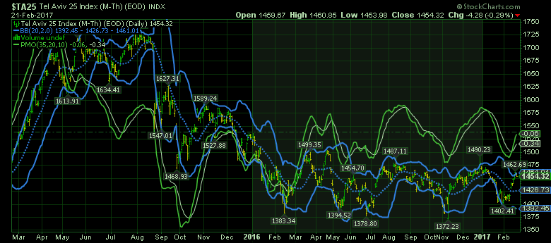 בניתוח יומי של מדד 25 המגמה הראשית דובית בעיקבות הירידה מרמת השיא באיזור ההתנגדות 1710 נק' והשיא ב-1720 נק'. הירידה מתחת לשער 1500 נק' שינתה את המגמה הצומחת היומית לדובית. מספר מתנדים נכנסים לאווירת שורט כמו לדוגמא מתנד RSI וה-MACD שפותח מרווח בגל היורד. הסטוקסטי ברמות שפל.