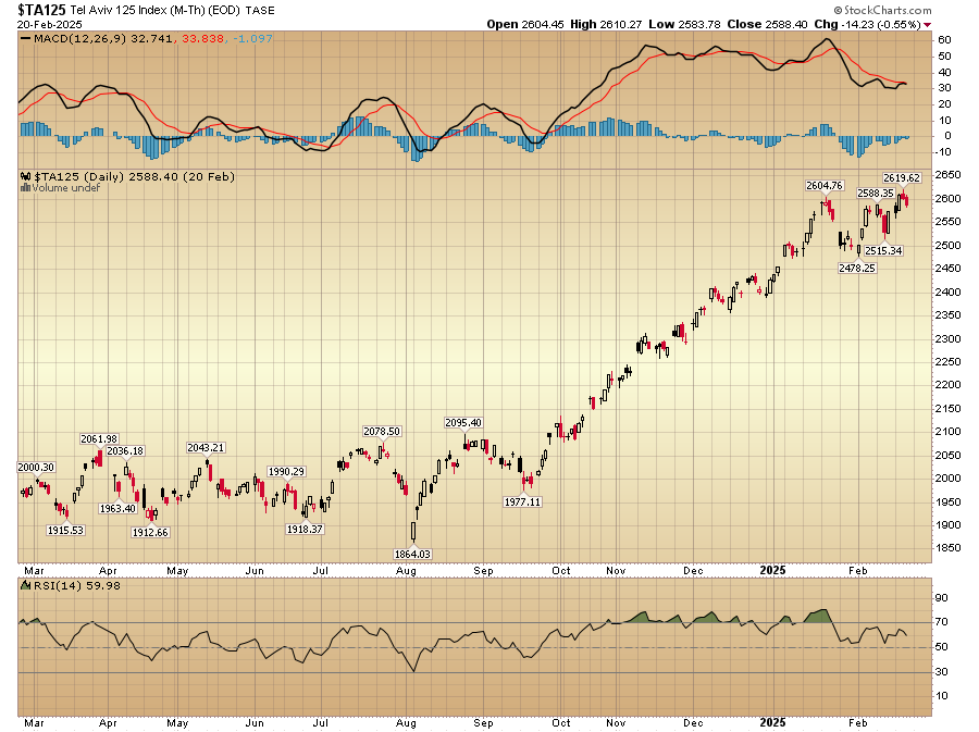 המדד בגרף היומי דובי. הירידה מהשיא ב-2070 נק' עברה בדרך מטה תוך חציית קו המגמה העולה באזור 1910 נק' והמגמה הפכה דובית. בעקבות התנודתיות הגרף נשא לונג וכעת הוא בשורט וזאת נראה עם מתנד ה-RSI בגזרה האדומה של השורט. כעת ניצבת תמיכה חזקה באזור ה-1660 נק' גם בכל רמת ניתוח.
