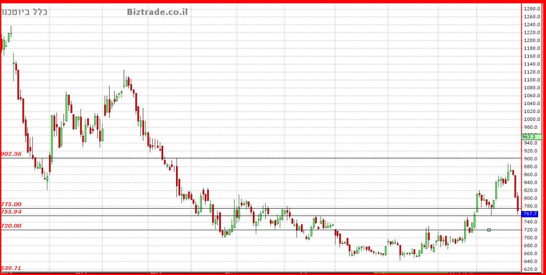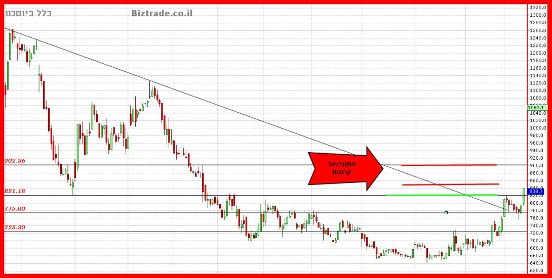 לסיכום : יותר צרות טכניות בגרף כלל ביו היא לא יכלה לבקש, יש לה בשפע ! אבל טכנית זה לא אומר שהתיקונים העולים לא צריכים להגיע, התרוממות עם סגירה ב 726, נותן לה יעד לאזורים ב 750, ולקו מגמה יורד מינורי, כאשר כול קו שתעבור מעליו צפוי יהיה לשמש כתמיכה, כאשר קווים ב 800 -- 850 -- הם