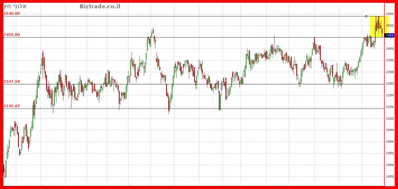 ואילו שבירה של ה 2450 = חזרה לטווח הדשדוש.