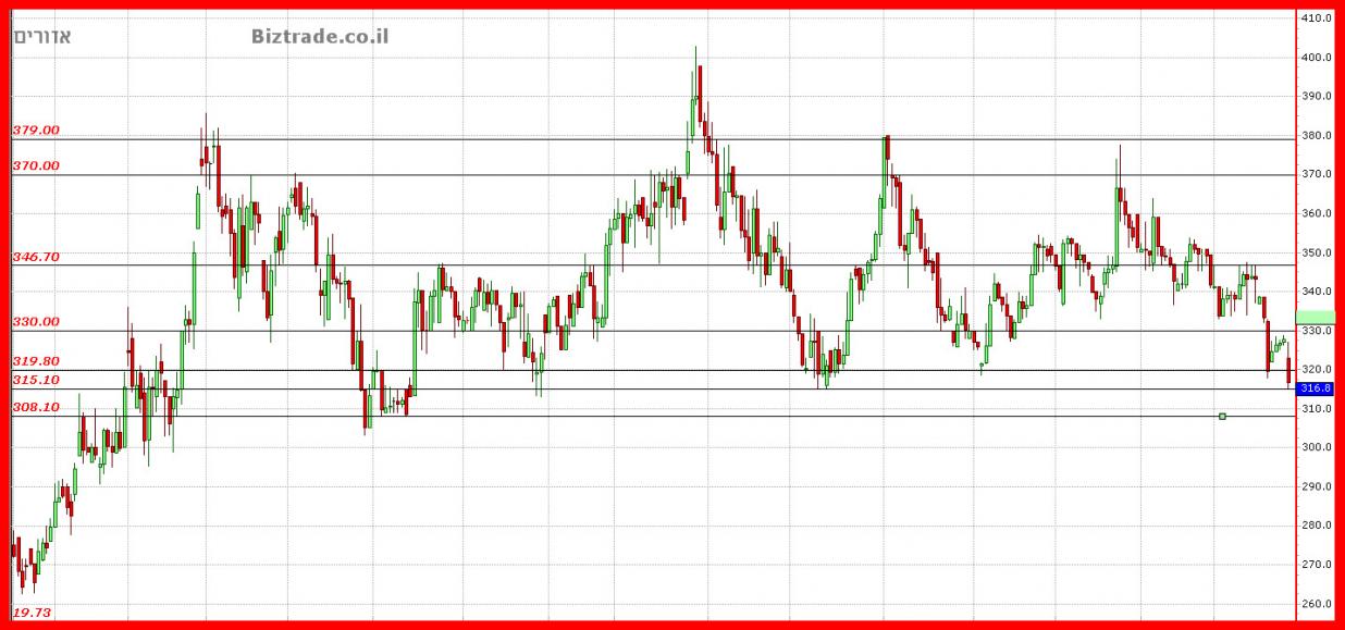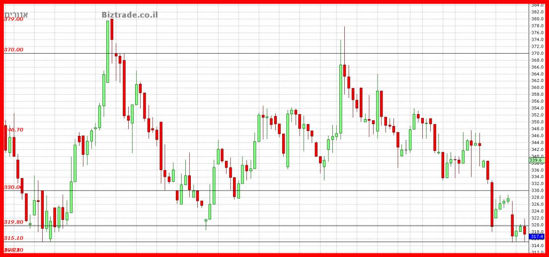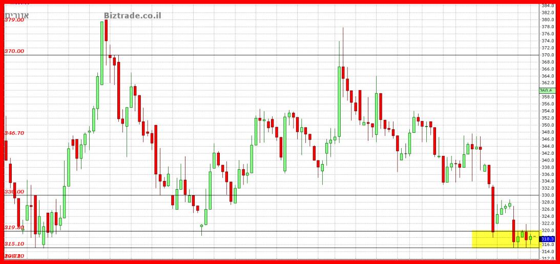 הקו לא נפרץ למרות ניסיון , והמחיר יושב טוב בינתיים על ה 315 שהוא קו טכני טוב.