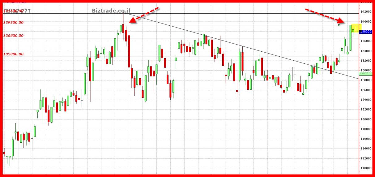 מ ה פאן הטכני קו חשוב ב 139300 נשבר , ובמידה והמחיר לא יחזור מיד ביום א" מעל קו זה הוא צפוי לרדת לקו הטכני הקרוב ב 136600.