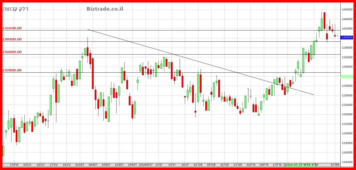 המחיר עדיין לא סיים את המהלך היורד שלו , כך שהגעה לתמיכה ב 136600 , עדיין אפשרית בסבב זה.