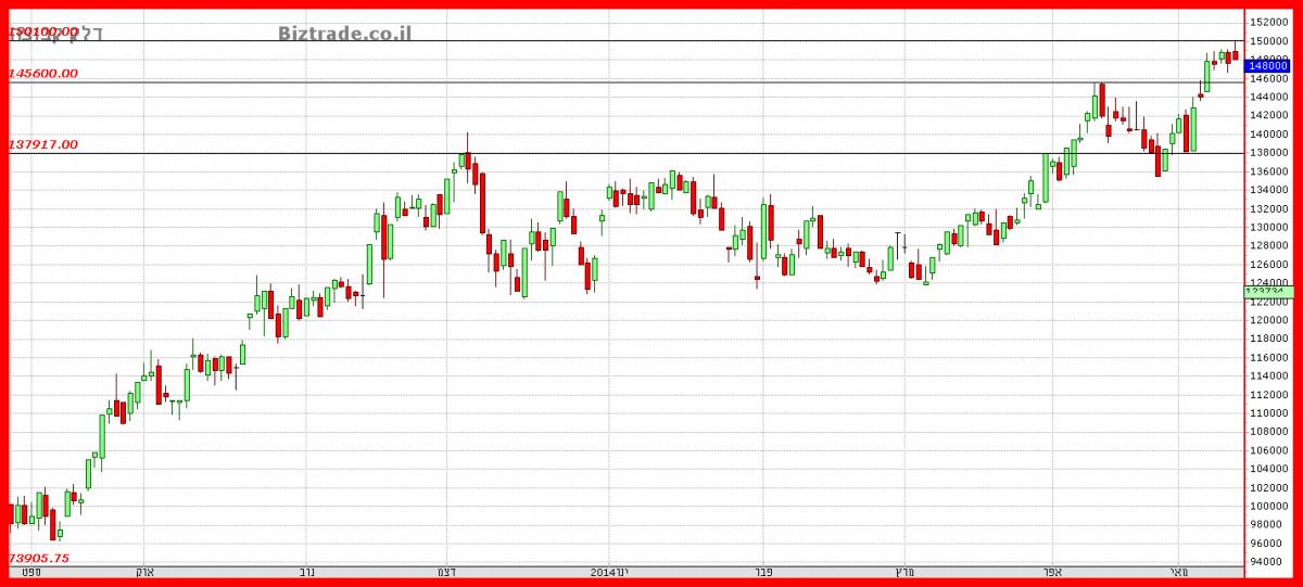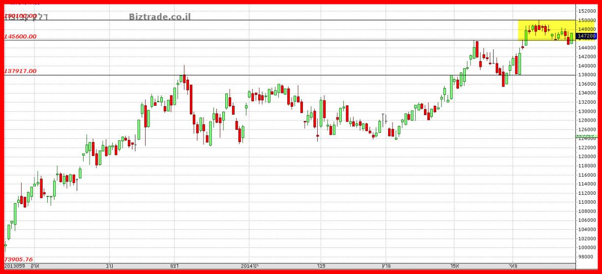 המחיר שוהה כבר 5 ימי מסחר ברמות שיא , לאחר שפרץ את הגבוה הקודם ב 145000.