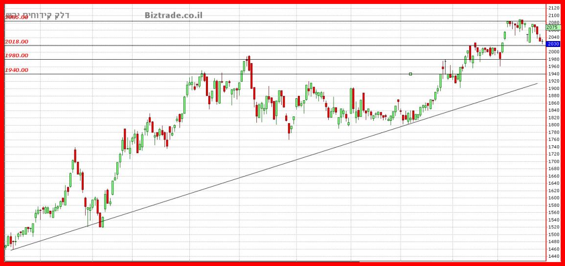 מתחת למחיר 3 תמיכות אופקיות טובות , שבכול מקרה יכולות כול אחת בנפרד וה 1940 בפרט , להחזיר את הקונים במידה והמחיר יגיע אליהם. המחיר סוגר אומנם קרוב וצמוד לתמיכה הקרובה, אבל גם באם ירד ממנה, לא צפוי כרגע משהו מיוחד.