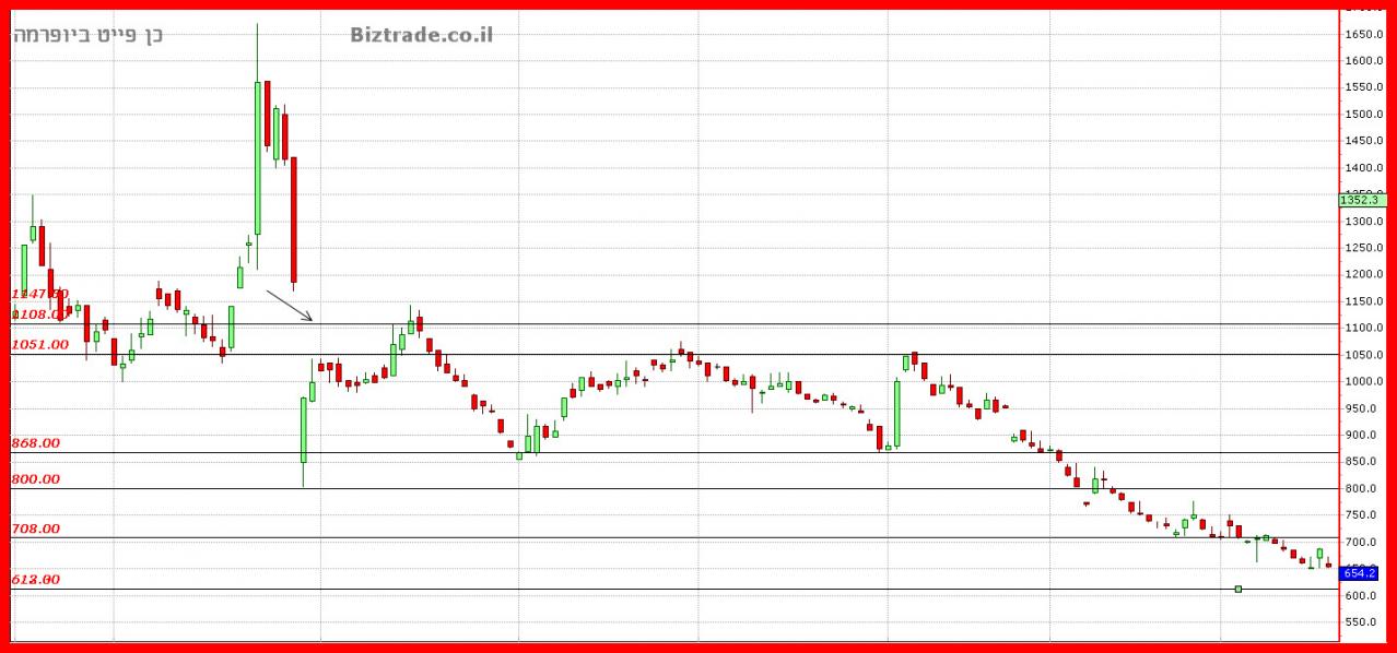 אין בגרף הזה עינין בינתיים לקונים להיכנס, , המחיר היום = בארך למחיר ההנפקה, כאשר המחיר נמצא מתחת לכול התמיכות הטכניות.