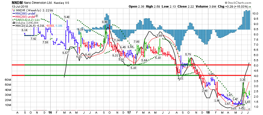 ננו דיימנשן,המנוהלת על ידי עמית דרור, מייצרת מדפסות תלת-ממד שמסוגלות להדפיס רכיבים אלקטרוניים שונים. בשבוע שעבר פרסמה החברה את דוחות הרבעון השלישי, רבעון בו ההכנסות שלה הסתכמו ב-1.7 מיליון דולר, לעומת 142 אלף דולר בלבד ברבעון המקביל (החברה התחילה להציג מכירות בשנה שעברה). בשלושת הרבעונים הראשונים של שנת 2018 הכנסות ננו דיימנשן הסתכמו ב-3.4 מיליון דולר, צמיחה של 745% ביחס לתקופה המקבילה ב-2017.