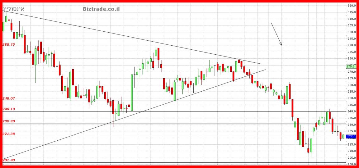 כאשר סגירה מתחת ל 222 = המשך ירידות וללא שפל עולה.