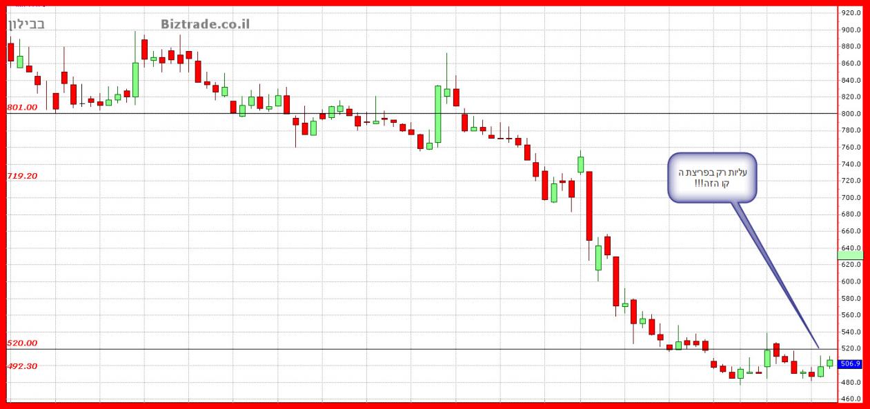 המחיר יוצר תחתית כפולה ב 480 וממנו שב לעליות קלות היום,