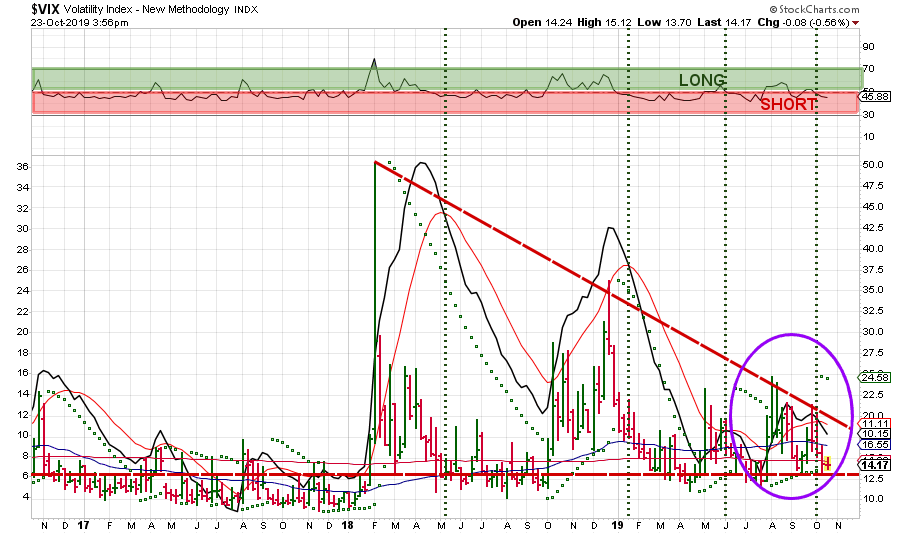 המדד היומי של שלושת החודשים נראית תנועה בגזרת השורט ומגמה דובית. לפי מתנד RSI העליון ומתנד ה-MACD שעוצמתו יורדת בהתמדה על פי האלכסון החום המצורף בכיוון היפוך ברמת 8 נק'. רק מעל 18 נק' מדד המדד יכול להפוך שורי.