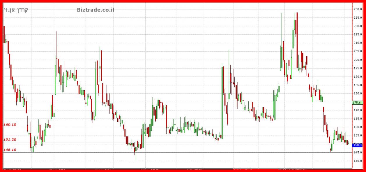 המחיר תקוע בין ה 145 -- 160 וכול עוד לא יפרוץ מעלה את הגבול , חבל להסתכן , כאשר סיום שבועי ב 148 , אפילו משאיר את ה 145 בסכנת שבירה.